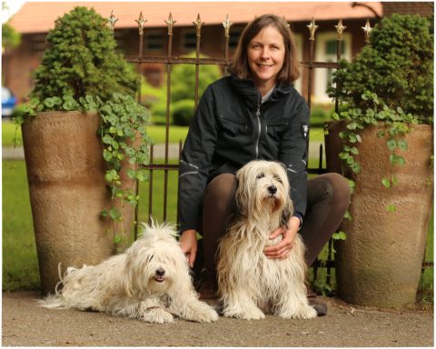 Die zweite Zuchtlinie sehen wir in der Klosterzucht. Als Weihegaben schenkten die Viehnomaden den Klöstern besonders ihre kleinen, zierlichen Hunde, die nun Begleiter, Wärmeflaschen und „Bethunde“ der Mönche wurden. Von dieser Zuchtlinie stammen vor allem die feinen, asiatisch runden Formen unserer Tibeter und besonders ihre verträgliche, liebenswerte Art, und damit ihr unvergleichlicher Charme!